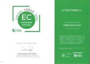 CLT VALLO CAMINO SL sido reconocida con el Certificado ARDÁN de Economía Circular 2024. Este galardón destaca nuestro compromiso con la sostenibilidad y el aprovechamiento responsable de los recursos, promoviendo prácticas que reducen el impacto ambiental y fomentan un modelo económico circular.